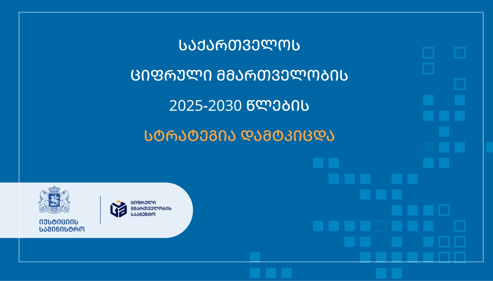 იუსტიციის სამინისტროს ციფრული მმართველობის სააგენტომ პარტნიორ უწყებებთან ერთად შეიმუშავა "საქართველოს ციფრული მმართველობის 2025-2030 წლების სტრატეგია", რომელიც ციფრული მმართველობის სფეროში საქართველოს მთავრობის გრძელვადიან დოკუმენტს წარმოადგენს.
