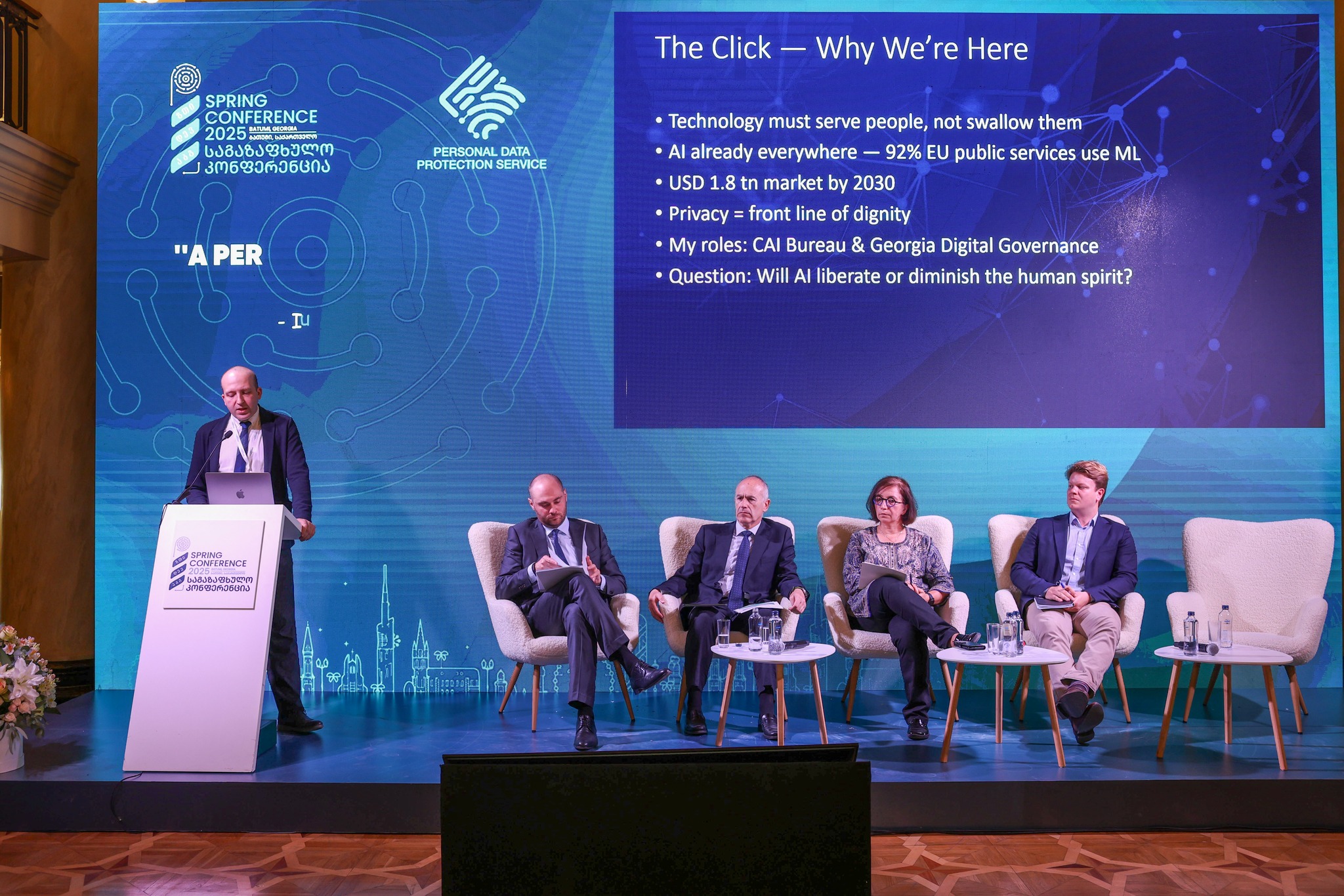 კიბერუსაფრთხოებისა და ციფრული მმართველობის სტრატეგიული დაგეგმვისა და ანალიტიკური სამსახურის უფროსმა, დიმიტრი გუგუნავამ, მონაცემთა დაცვის საერთაშორისო კონფერენციაზე ევროპის საბჭოს #225 ჩარჩო კონვენციაზე ისაუბრა. დოკუმენტი მოიცავს “ხელოვნური ინტელექტის, ადამიანის უფლებების, დემოკრატიისა და სამართლის უზენაესობის შესახებ” და ამავე კონვენციის მიზნებისთვის შექმნილ დოკუმენტზე “ადამიანების უფლებების, დემოკრატიისა და სამართლის უზენაესობის პერსპექტივიდან ხელოვნური ინტელექტის სისტემებთან დაკავშირებული რისკებისა და აღნიშნული სისტემების ზეგავლენის შეფასების მეთოდოლოგიას” (HUDERIA).